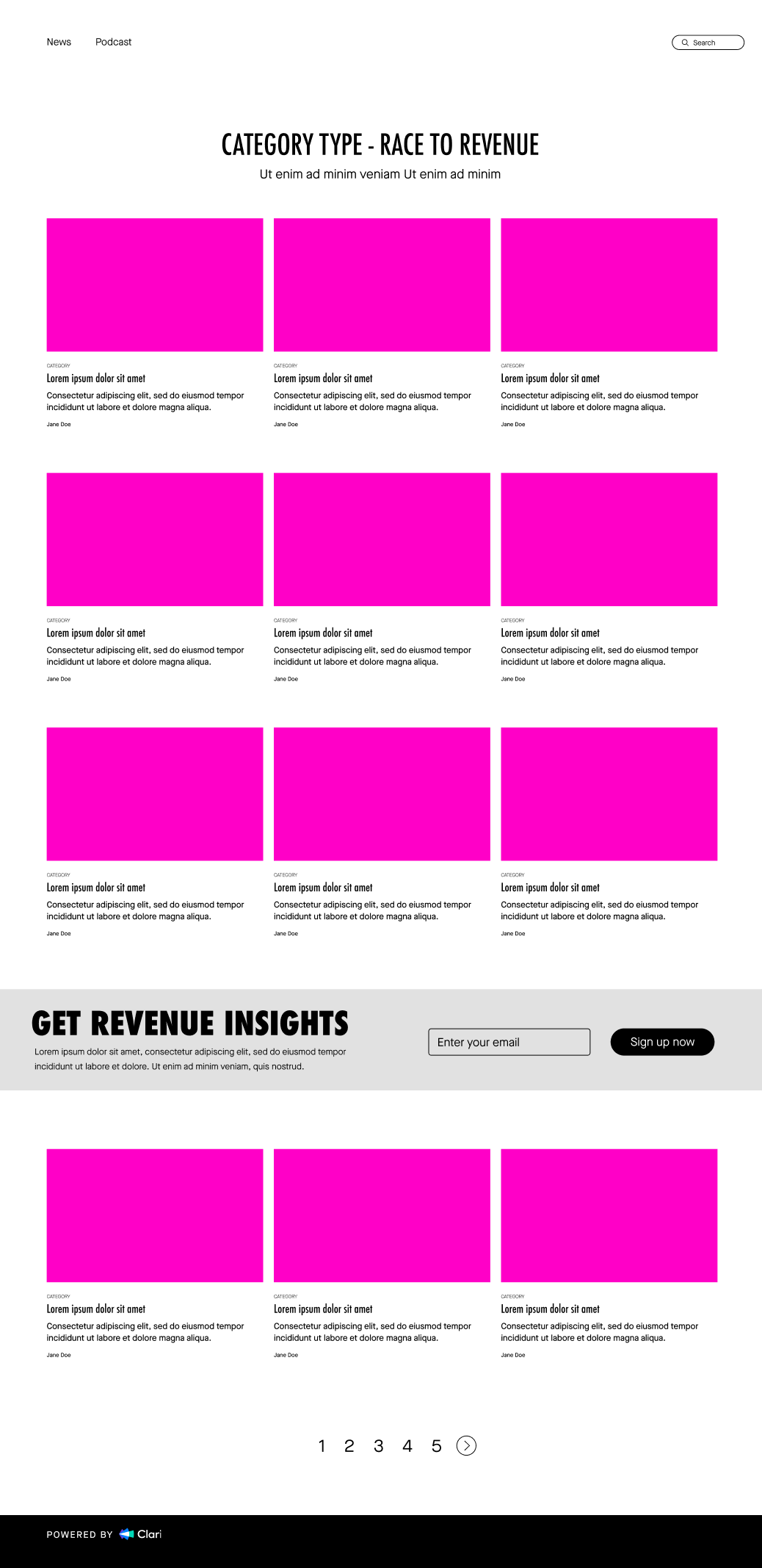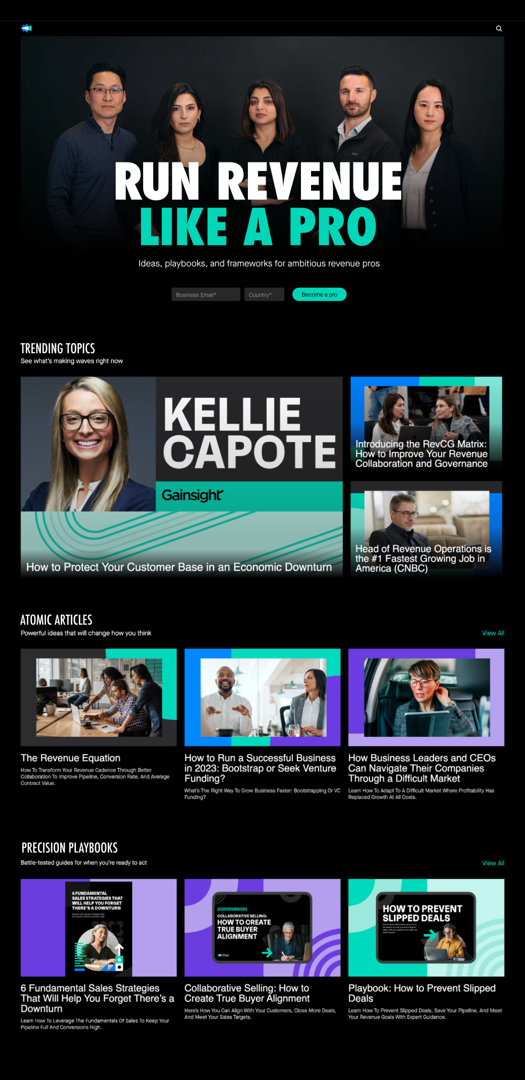 The launch of RunRevenue.Pro drew nearly 9,000 visitors (445% of goal) and over 500 subscribers (500% of goal), demonstrating strong interest in revenue operations thought leadership content. I collaborated with our creative director to create multiple wireframes, translate them into high-fidelity mockups, and design thumbnails for all content pieces, ensuring a cohesive, visually engaging experience that amplified authority and encouraged audience engagement.